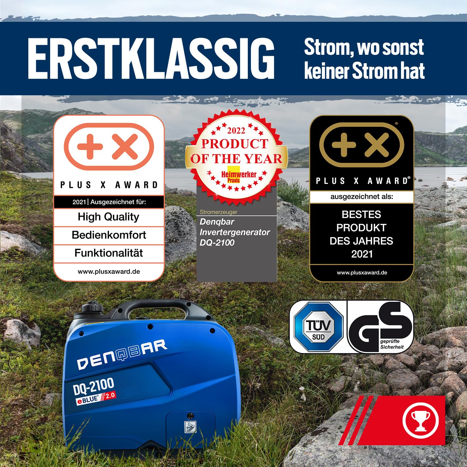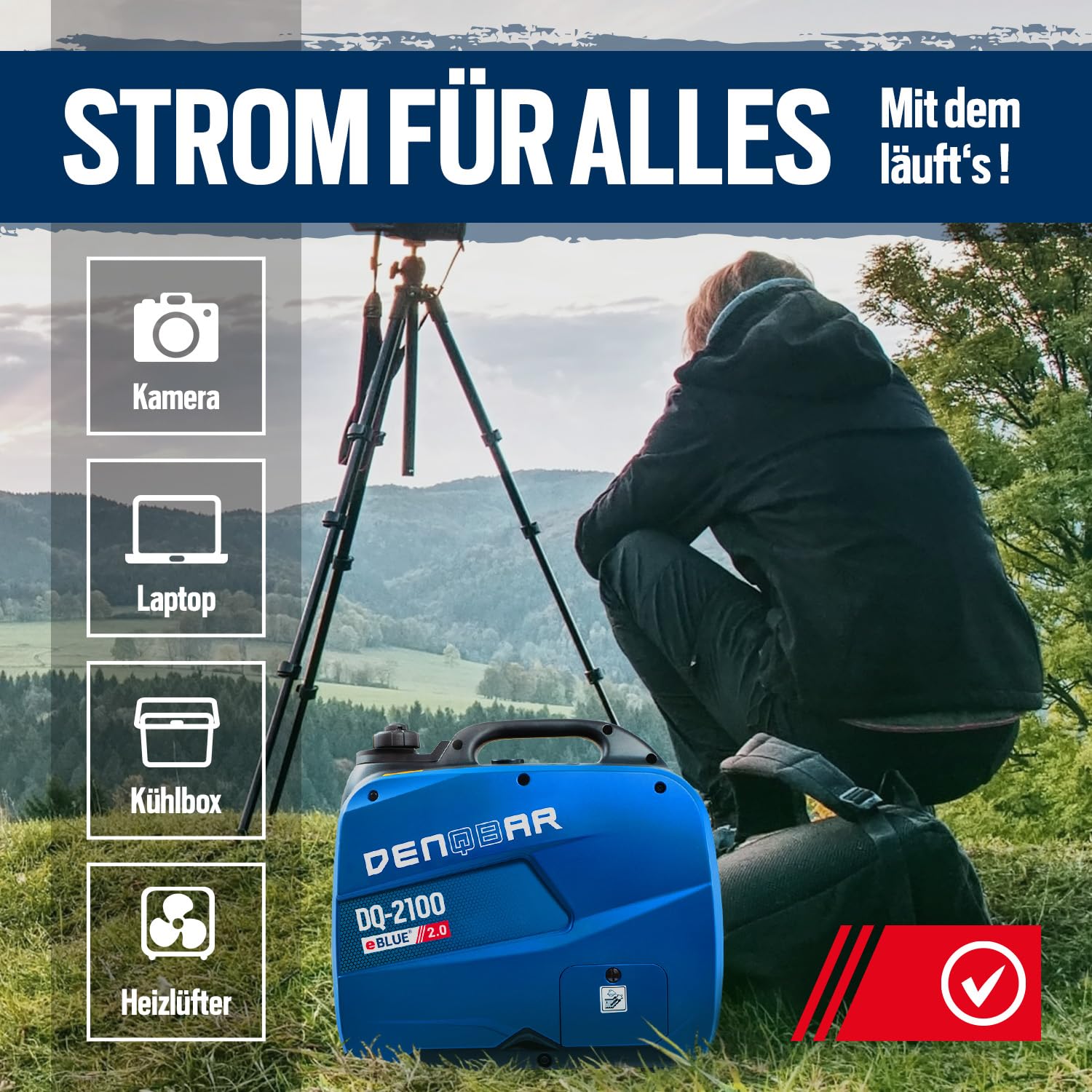- SAUBERER STROM: Der Inverter Generator DQ-2100 sorgt durch die eBLUE 2.0-Technologie und die gekapselte Bauweise für einen superleisen Betrieb und im Öko-Modus für weniger Benzin-Verbrauch.