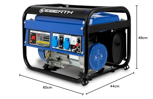 - UNABHÄNGIG: Egal wo man ist, mit dem Stromerzeuger von EBERTH generieren Sie an jedem beliebigen Ort Ihren eigenen Strom und schützen sich vor mangelhafter Stromversorgung. Das Notstromaggregat hat ein stabiles Metallgestell, Abmessungen von 60x44x46 cm und wiegt ohne Betriebsstoffe ca. 35 kg